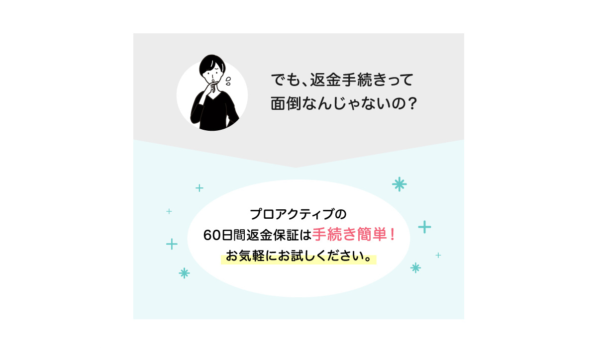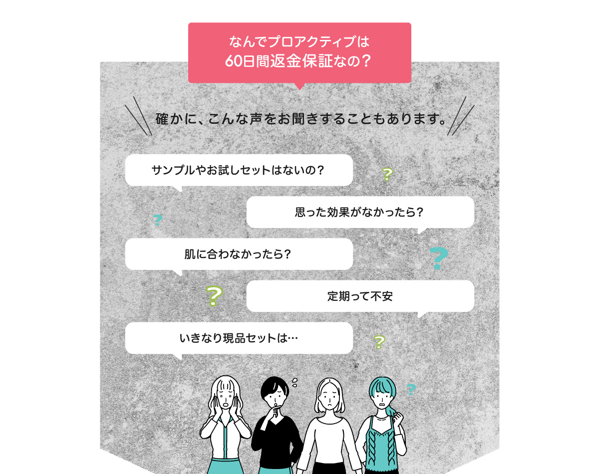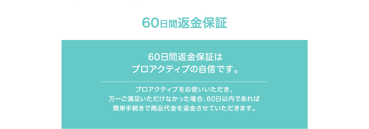 お肌の生まれ変わり周期は約28日周期と言われており、プロアクティブはこの周期を繰り返すことでお肌の状態を改善していきます。そのため、じっくり納得がいくまで使用してほしいという願いが込められています。