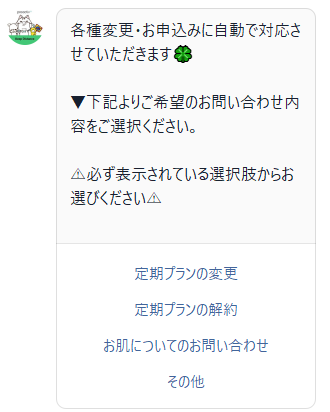 - ③お客様情報を入力するとお問い合わせメニューが出てくるので該当するものを選択