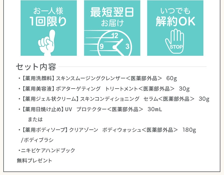 スキンケア商品は、お客様の肌で実感していただかなければその効果がわからないものです。 そこで生まれたのが60日間返金保証。万一お肌に合わない場合、商品のお届けから60日以内であれば、商品を使い切っても商品代金を返金いたします。 返品の際は、事前にお問い合わせ窓口までご連絡ください。 ただし、全商品の容器がない場合はお引取りいたしかねますのでご了承ください。 また、発生した送料、手数料はお客様のご負担となります。 ご返送は、お手元に控えの残る宅急便、ゆうパック等をご利用ください。 控えがない場合の配送トラブルの責任は負いかねます。